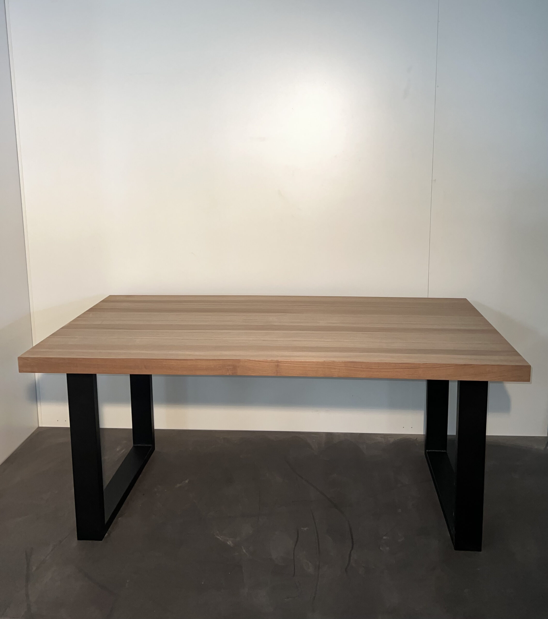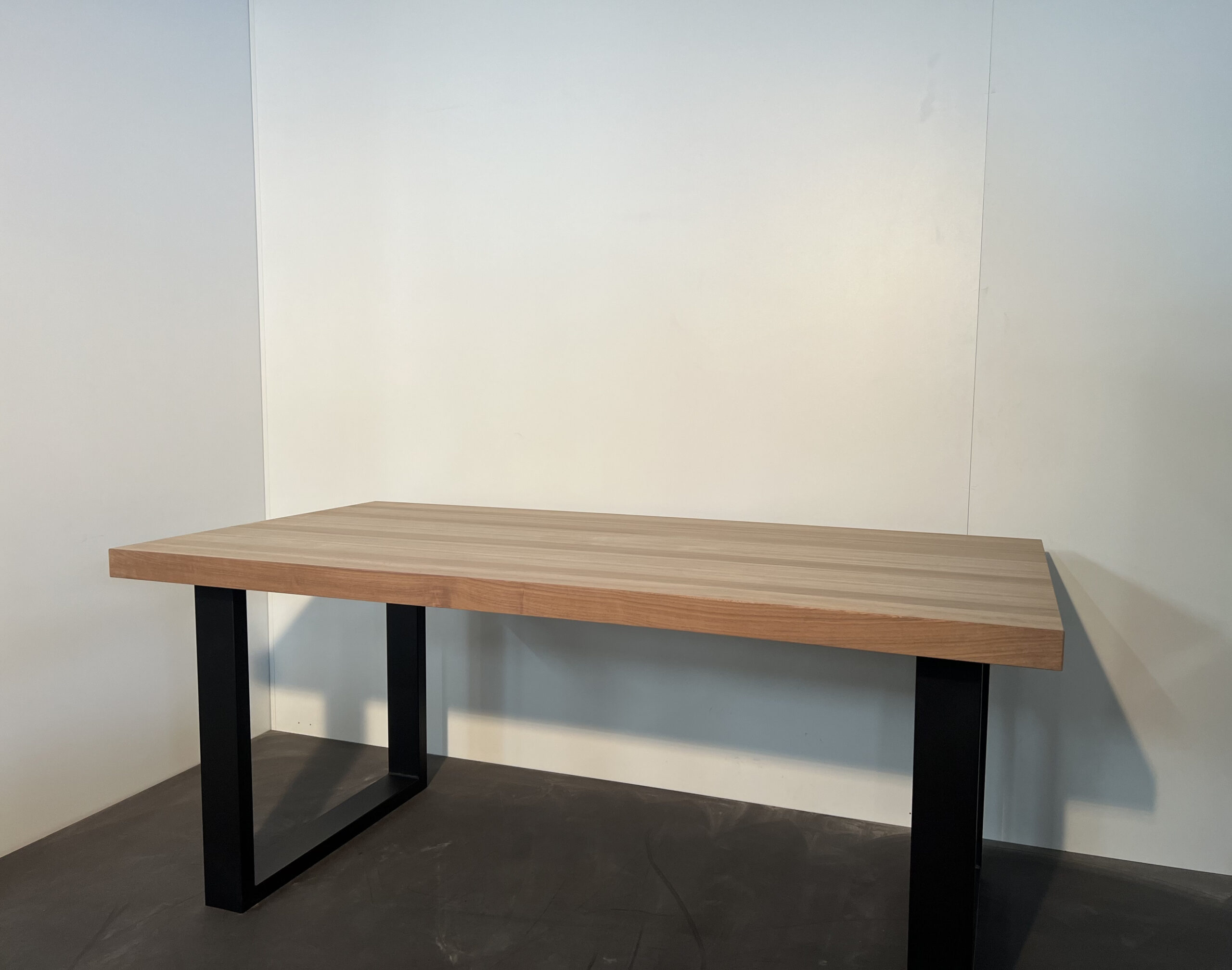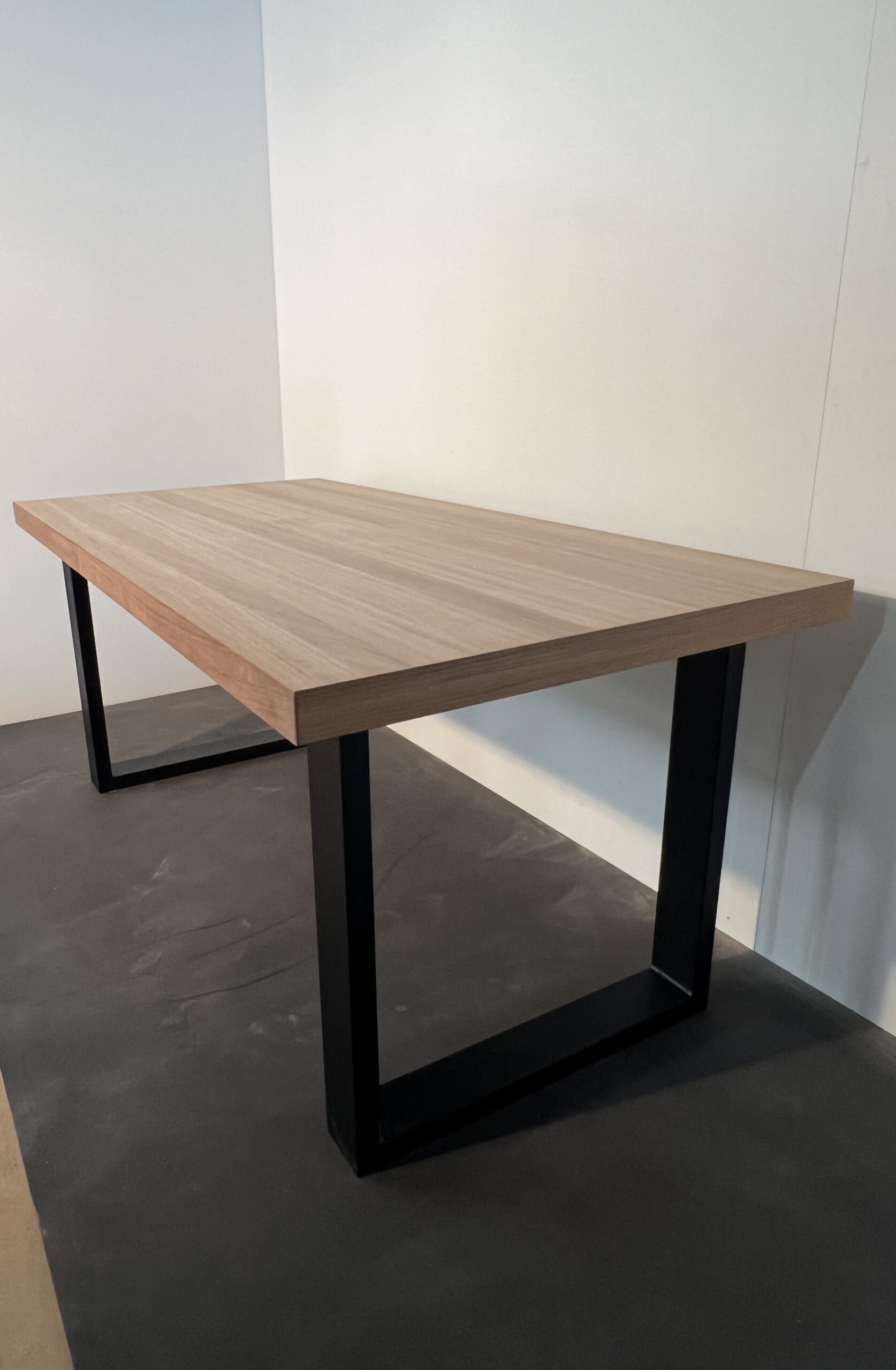 De tafel staat stevig op elegante zwarte U-poten van gepoedercoat staal. Deze robuuste poten zorgen niet alleen voor een industriële touch, maar bieden ook uitstekende stabiliteit en draagkracht.