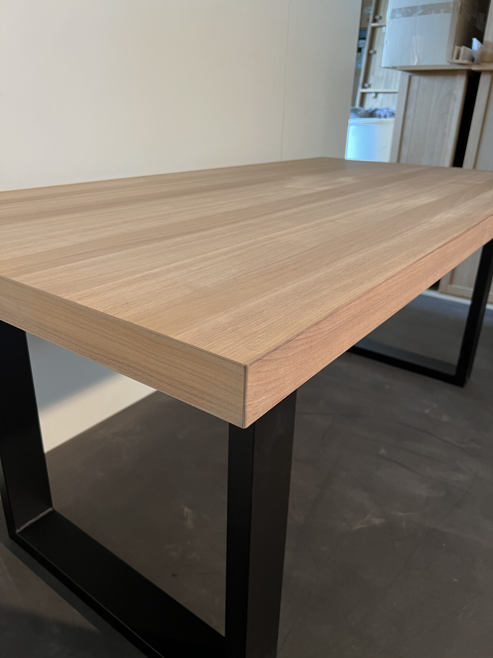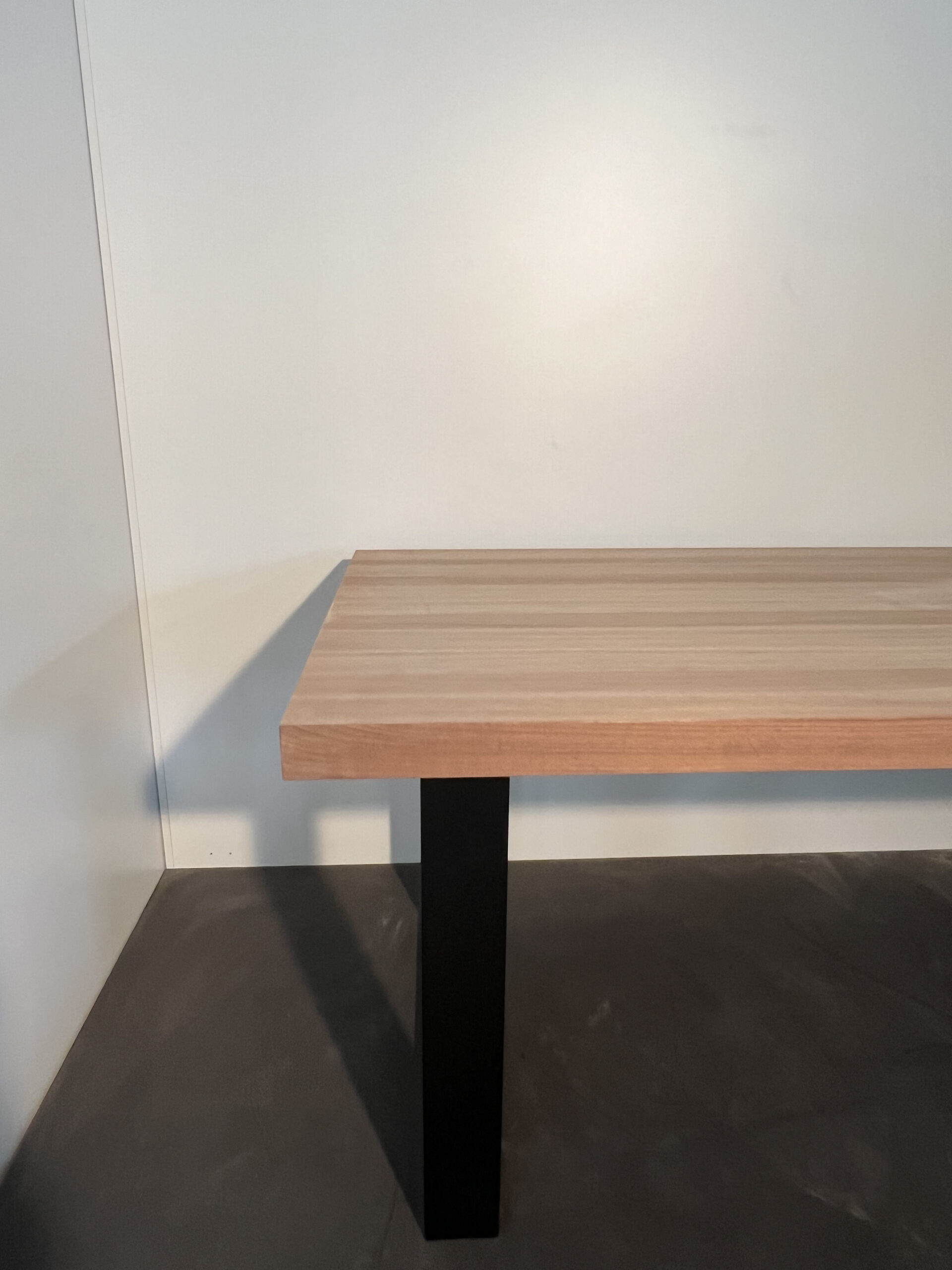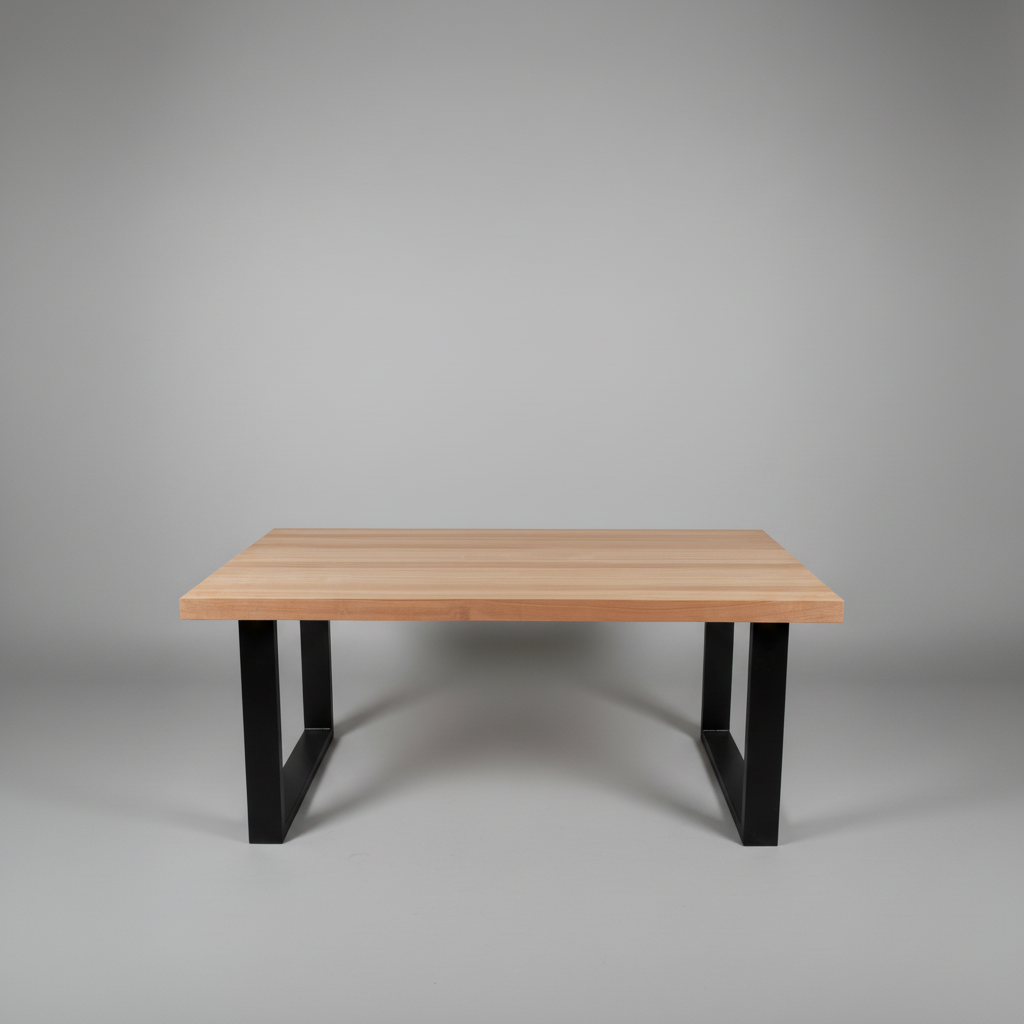 De tafel staat stevig op elegante zwarte U-poten van gepoedercoat staal. Deze robuuste poten zorgen niet alleen voor een industriële touch, maar bieden ook uitstekende stabiliteit en draagkracht.